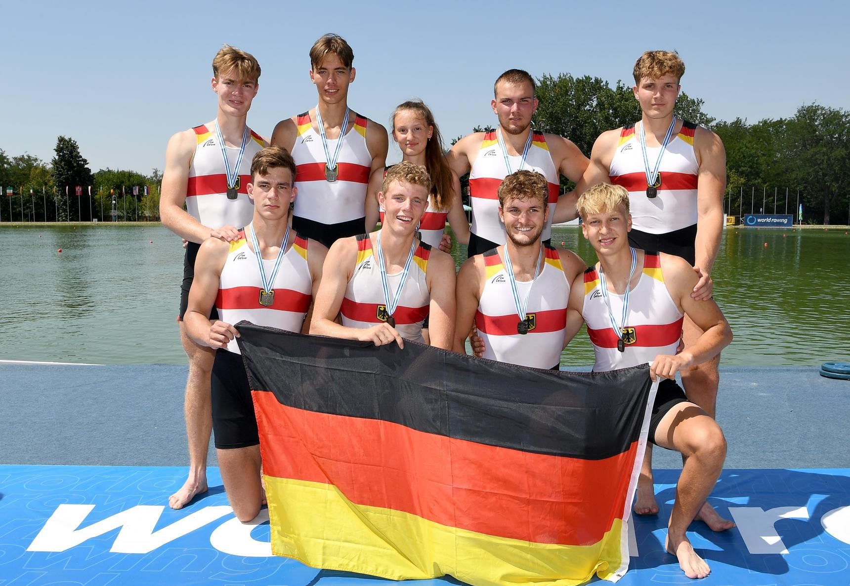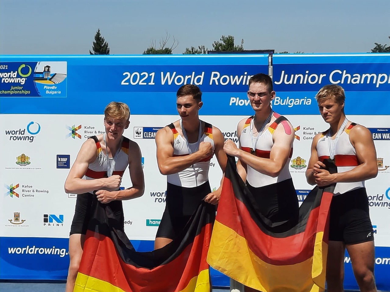 Der Vierer-ohne des Berliner RC gewinnt die Bronze-Medaille für Deutschland bei der diesjährigen U19-Weltmeisterschaft. Mika Richter, Kort Fricke, Lukas Wojciechowski, Johann Svoboda werden von Leonard Schmitz trainiert (Berliner RC).