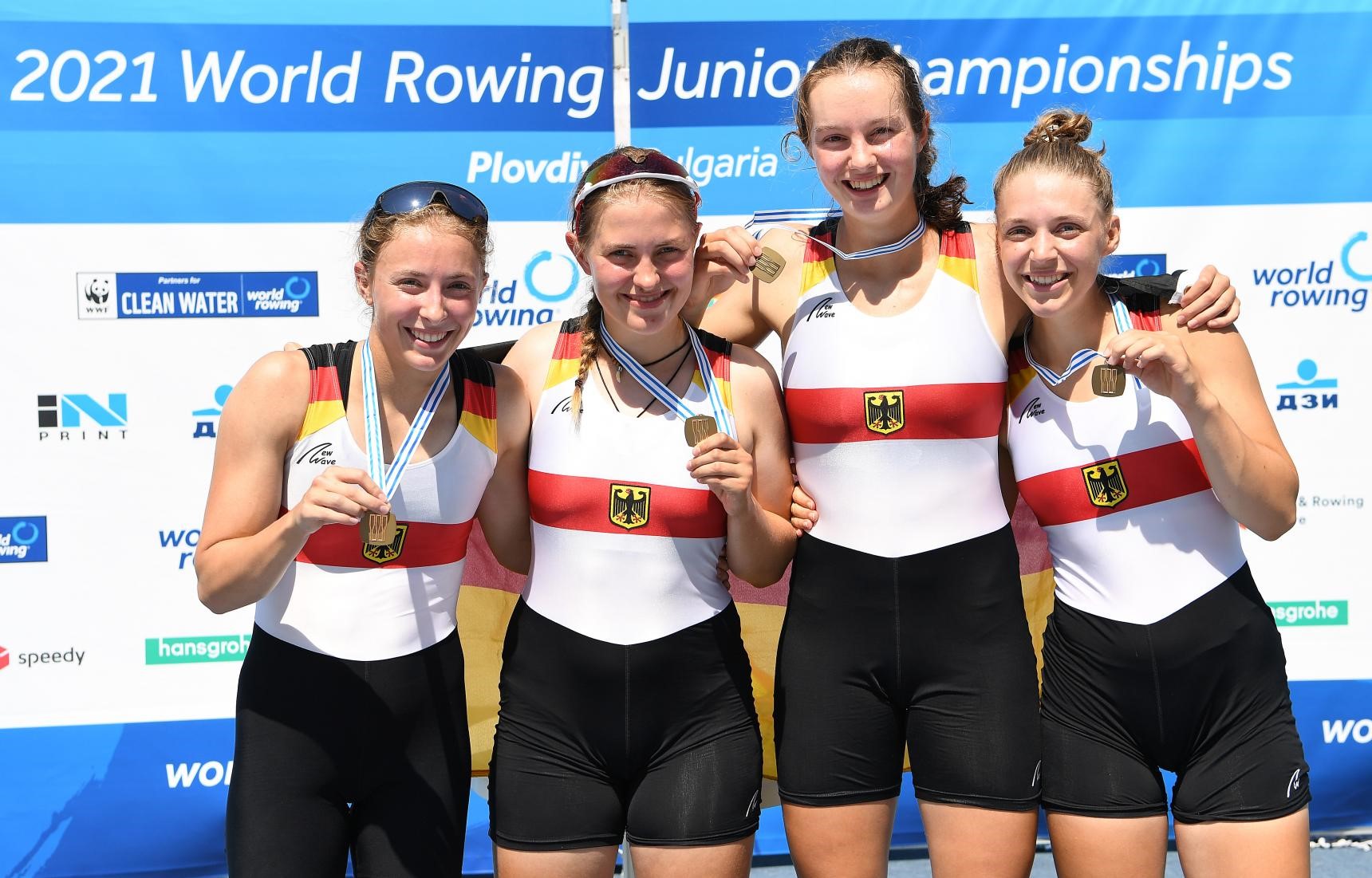 Bronze im 4X: Lina Götze (2. v.l., RaW) und Marlene Schollmeyer (re, RUA)