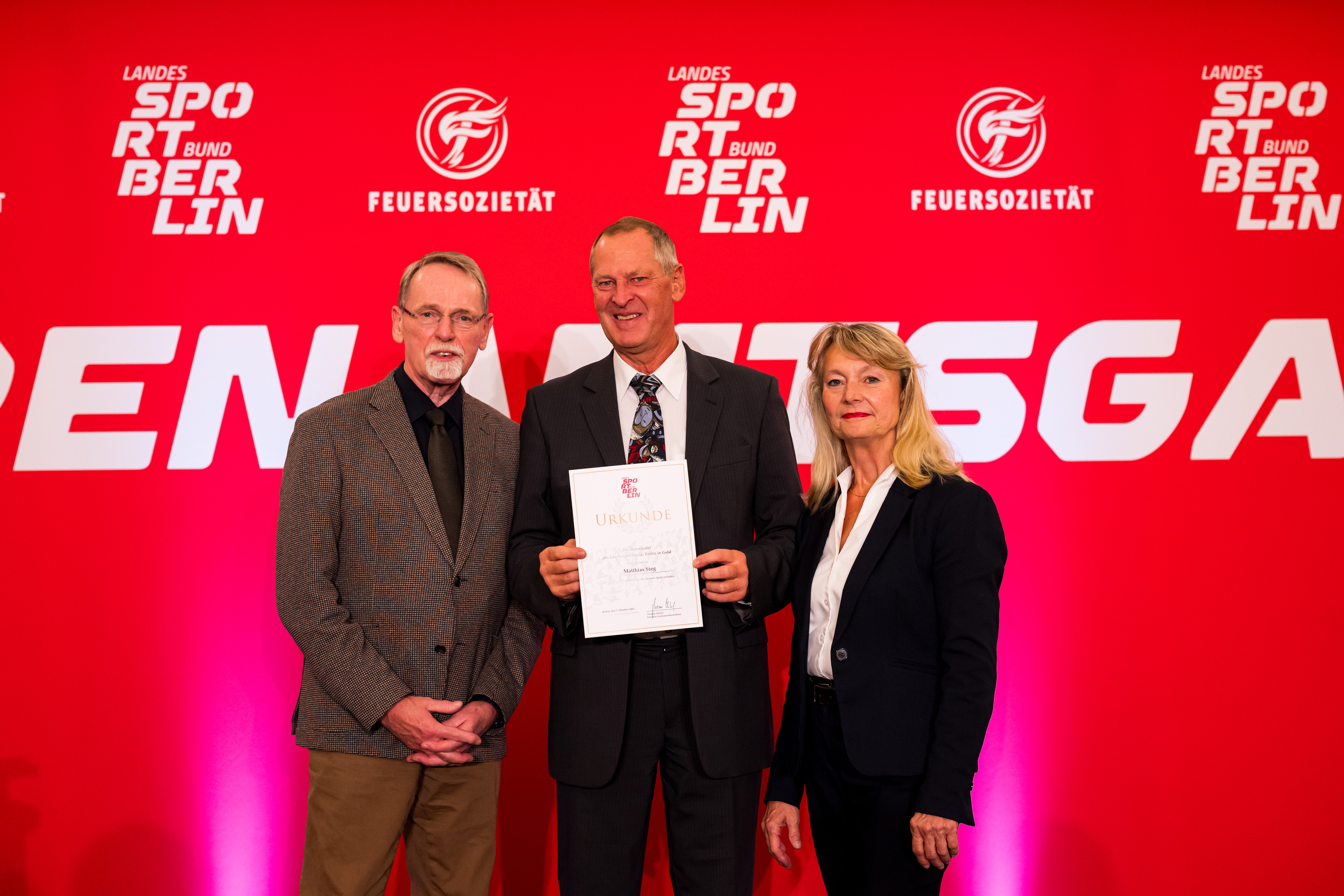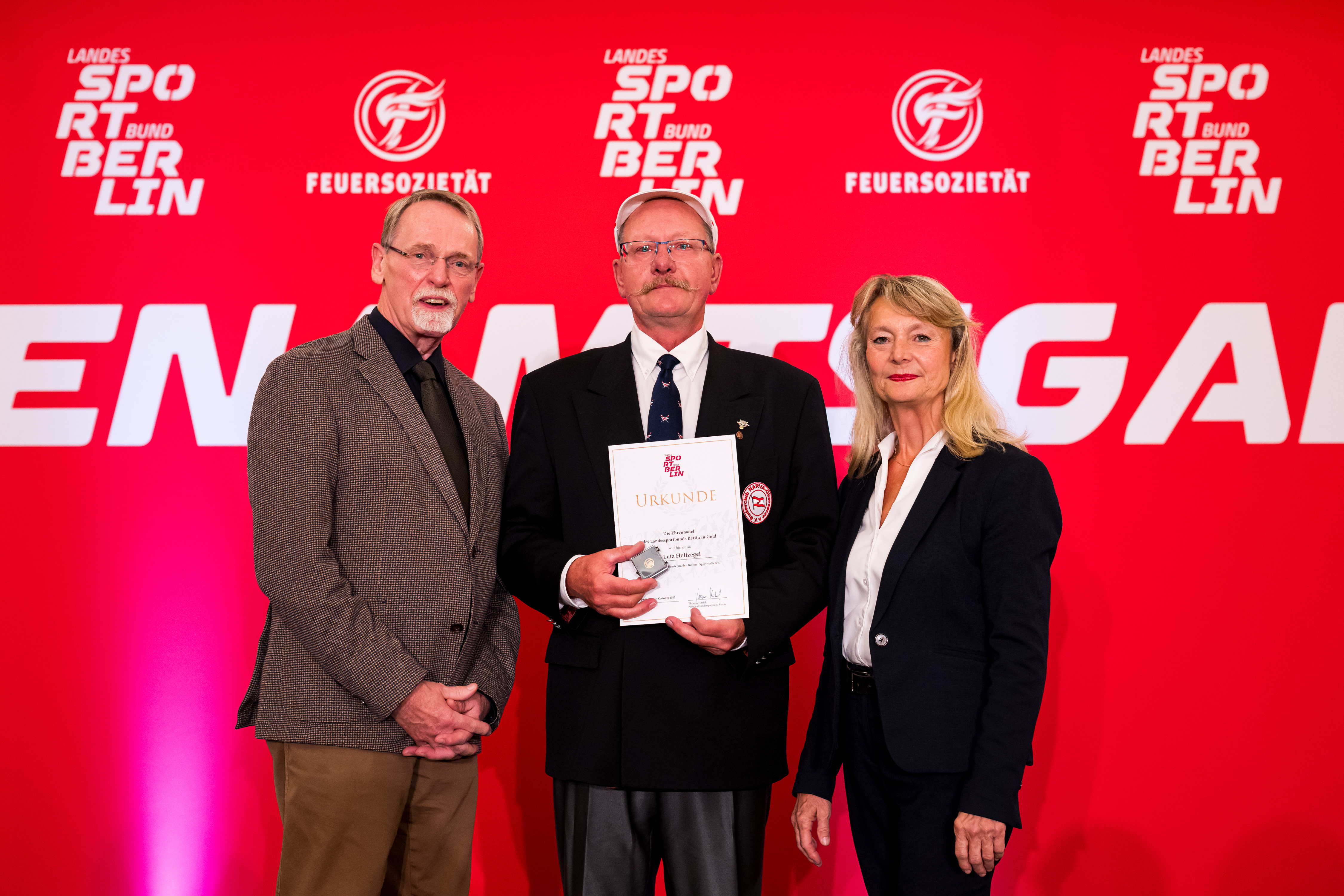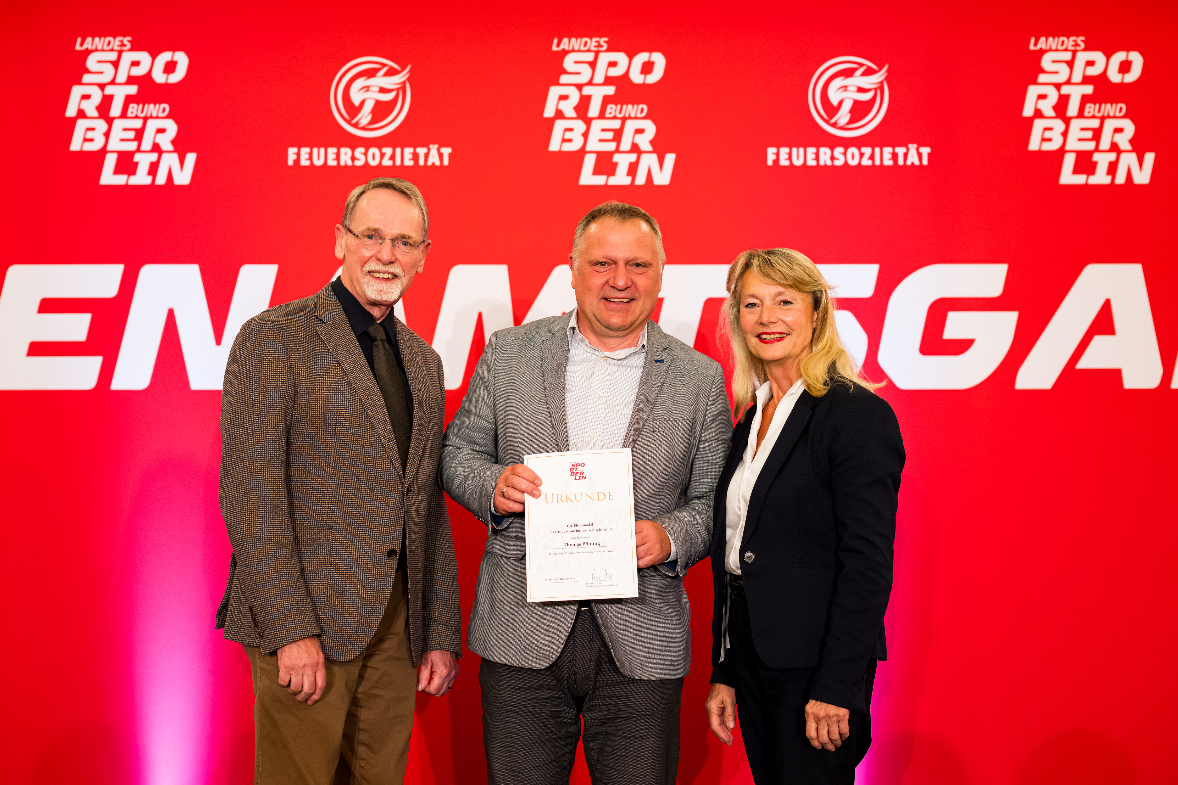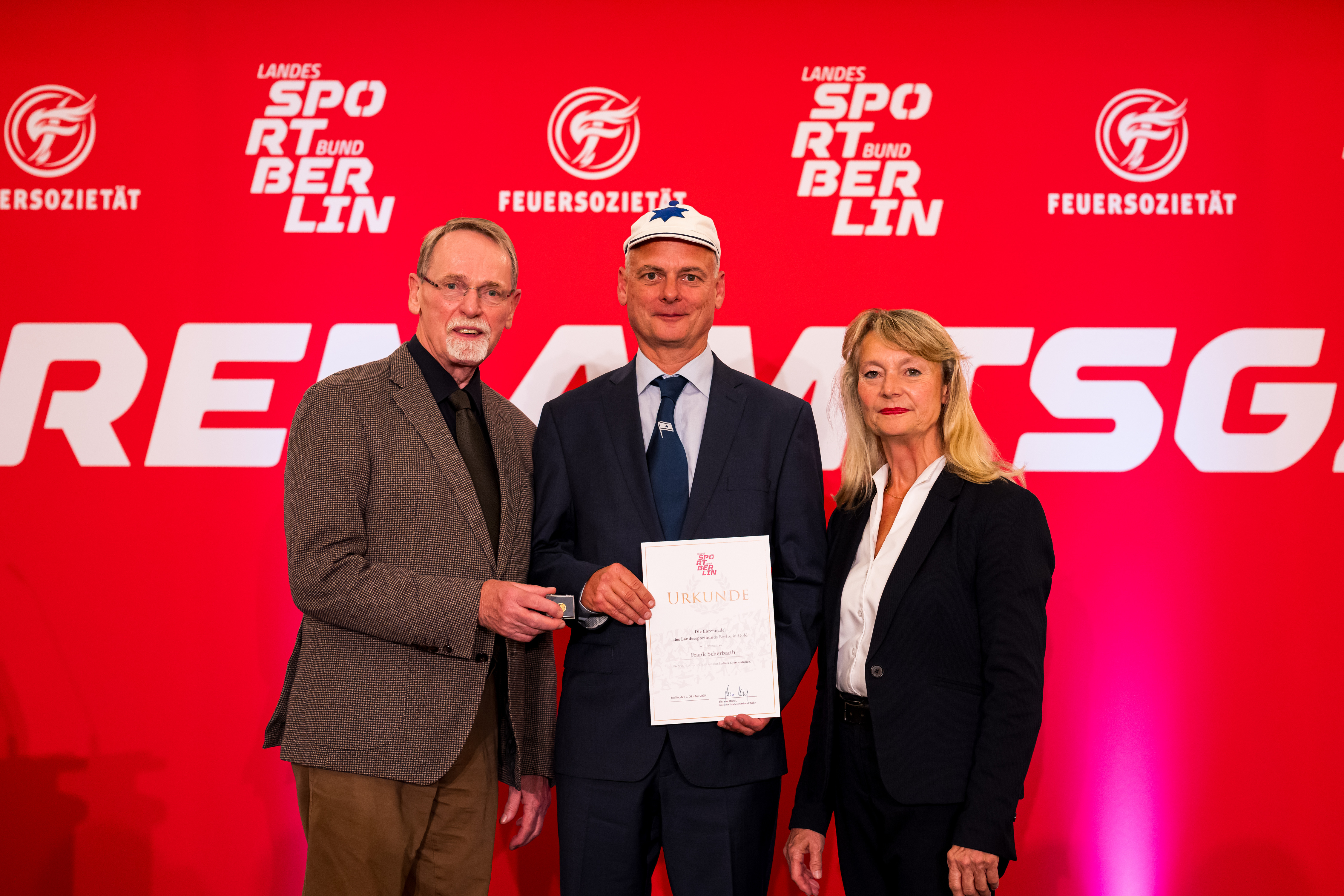 Dankeschön und große Anerkennung für Ehrenamtliche im Sport: Berlins Regierender Bürgermeister Kai Wegner, Landesportbund-Präsident Thomas Härtel und Dr. Frederic Roßbeck, Vorstandsvorsitzender der Feuersozietät Berlin Bandenburg Versicherung, haben im Rahmen einer festlichen Gala am 7. Oktober 2025 im Roten Rathaus rund 60 verdienstvolle Engagierte ausgezeichnet, unter ihnen auch Mitglieder unserer Rudervereine: