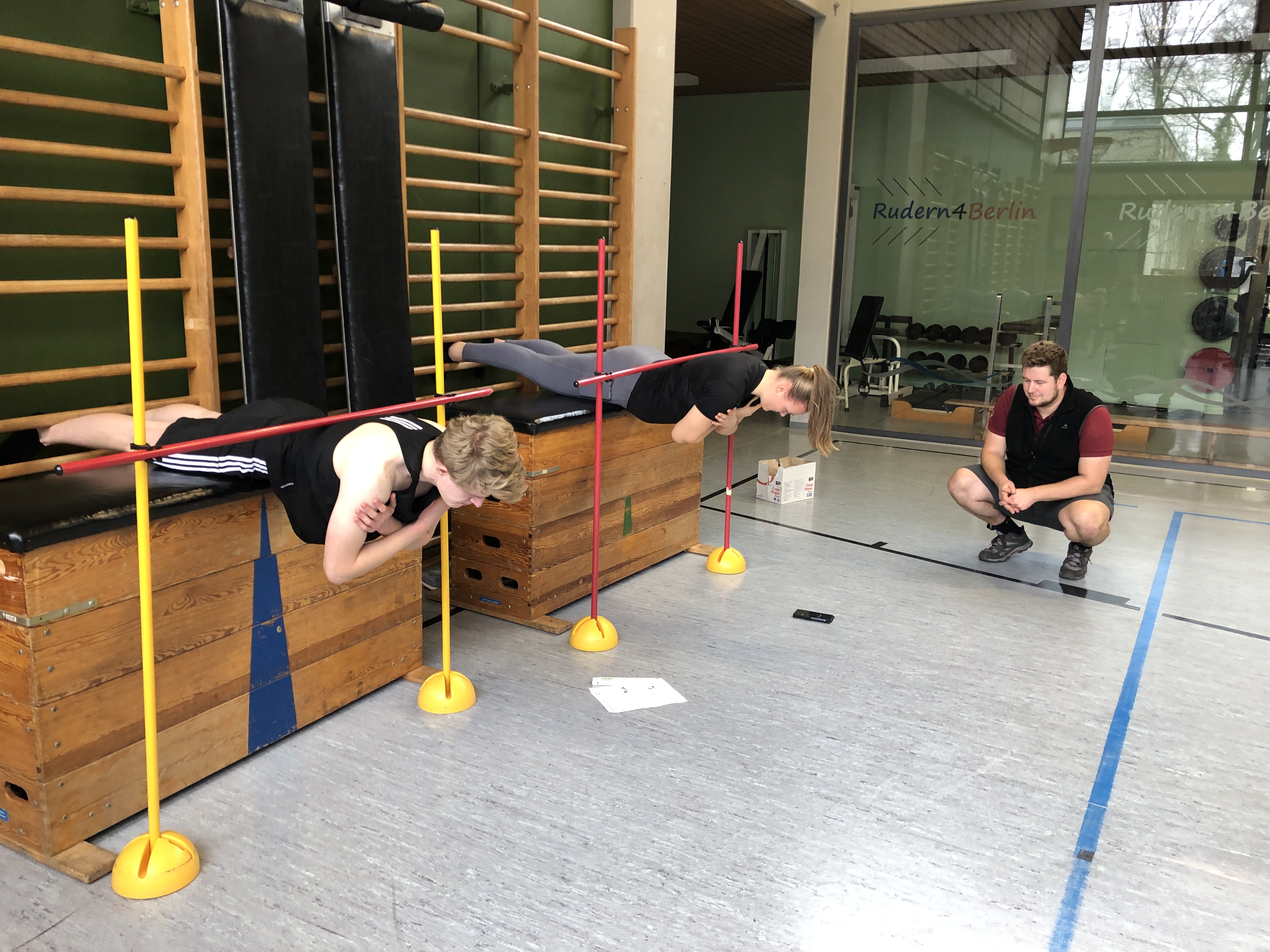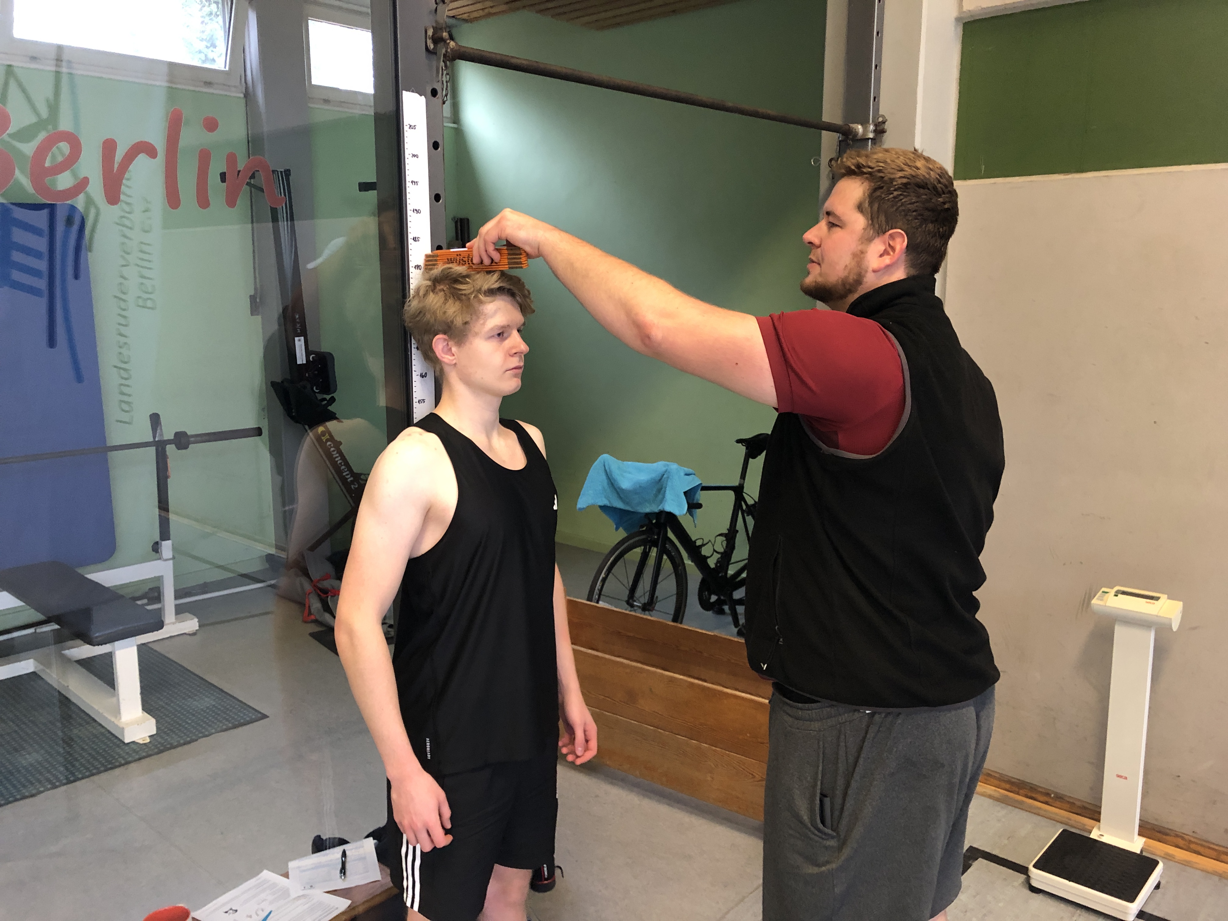 Die Trainer hatten den Talenttag in drei Teile aufgeteilt. Zum ersten gehörten verschiedene Messungen, wie Gewicht, Körpergröße, Armspannweite und Sitzhöhe der Aktiven. Im zweiten Teil ging es um Kraft, Koordination, Ausdauer und Schnelligkeit: Auf dem Concept 2 Dyno wurde mit Beinpresse und Armzug die Kraft gemessen, bei Schluss-Dreisprung und im Standhochsprung die Leistungsfähigkeit der Bein- und Hüftstrecker, bei der Adlerhalte die Ausdauer und auf dem Concept 2-Bike stufenweise die Sprintfähigkeit. Im dritten Teil des Tests konnten die Jugendlichen die Ruderergometer ausprobieren und gemeinsam mit den Trainern die Ergebnisse des Tests auswerten.