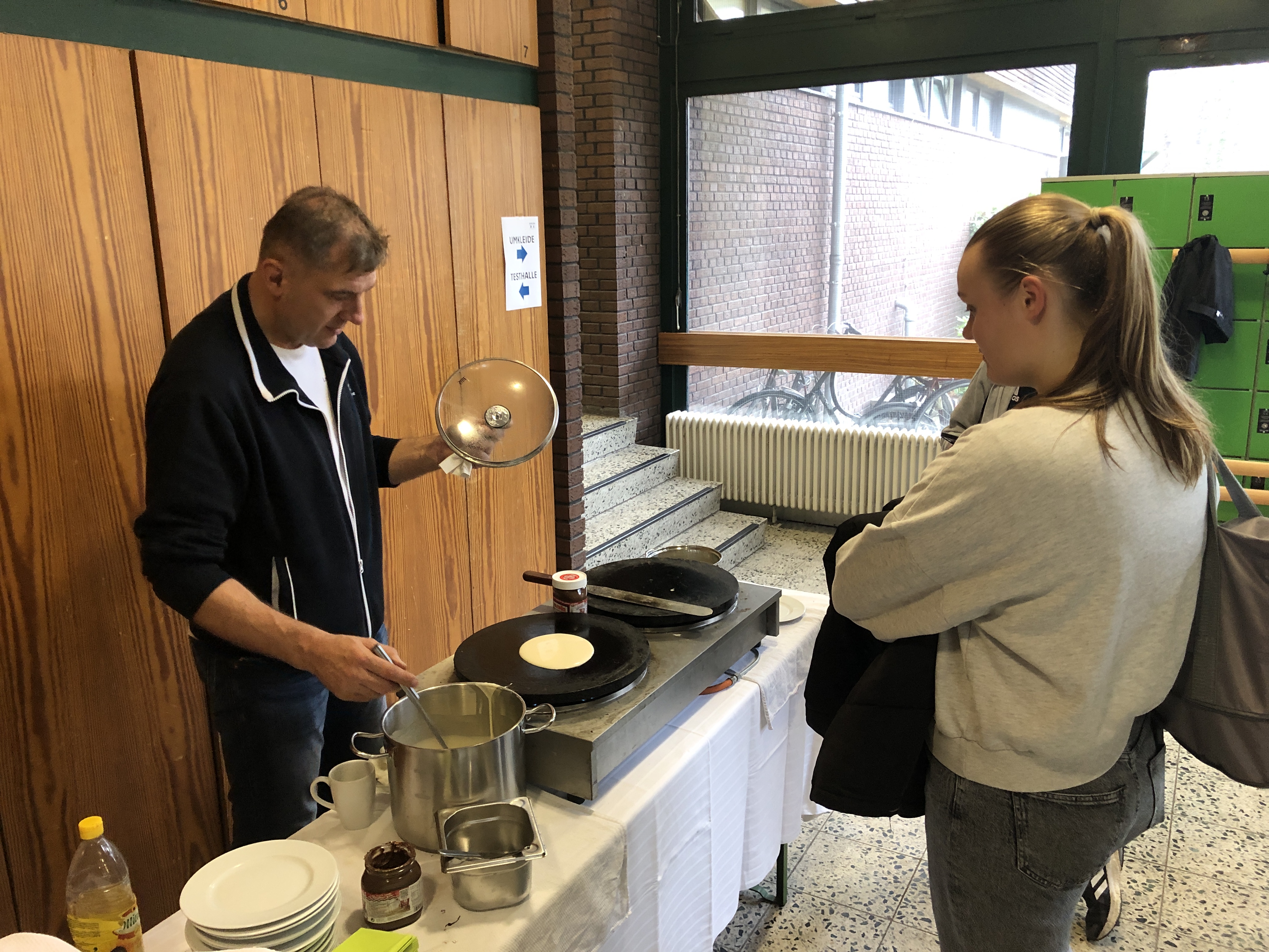 Jaroslawa hatte von ihrem Klassenlehrer von dem Talenttag erfahren: „Er hat gesagt, ich soll hier hingehen." Sie kam gemeinsam mit Nicolas. „Wir trainieren beide beim BRC Hevella im Breitensportbereich", sagt er, „Wir wollen sportlich mehr machen. Deshalb sind wir heute hier." So denkt auch Valentin. Er kommt von der Ruder-Union Arkona Berlin 1879. „Ich suche eine Trainingsgruppe, wo ich mehr auf Leistung trainieren kann", erklärt er. Mit einer Visitenkarte vom Berliner Ruder-Club in der Tasche geht er vom Talenttag nach Hause. Valerie ist eine Quereinsteigerin. Sie war lange Zeit Schwimmerin – bis sie in dieser Sportart keine Entwicklungsmöglichkeit mehr sah und im März zum Rudern wechselte. Mit ihren Ergebnissen beim Talenttag möchte sie sich für das Training bei den Kaderathletinnen empfehlen. Auch sie powert sich beim Talenttag aus, der vom Landessportbund und von der Senatsbildungsverwaltung im Rahmen der Talentsichtung unterstützt wurde. Am Ende genießt sie die Crepes, die Landestrainer Nick Wustlich für alle Teilnehmenden macht.