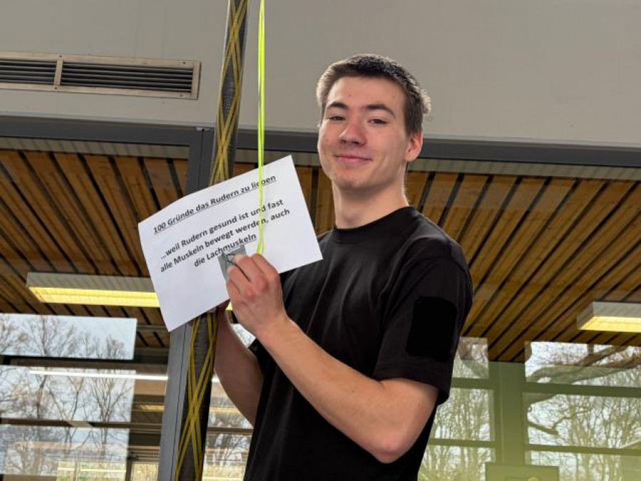 Zur Abwechslung und weil ein Talenttag auch Spaß machen soll, wurde bei einem Angelspiel die Geschicklichkeit auf die Probe gestellt: An Skulls waren Schnüre gewickelt, an deren Ende kleine Magnete befestigt waren. Damit konnten Zettel aus Kästen gefischt werden – mit „100 Gründen, das Rudern zu lieben“. Arthur von der Paula-Fürst-Schule angelte einen Zettel, auf dem stand: „… weil Rudern gesund ist und fast alle Muskeln bewegt werden, auch die Lachmuskeln.“ Seine Sportlehrerin Louisa Neuland hatte ihm von dem Talenttag berichtet. Sie ist zugleich Trainerin bei der Ruder-Union Arkona Berlin 1879 e.V. Seit ein paar Wochen trainiert er bei ihr im Rahmen einer Schulkooperation und hat viel Spaß dabei.