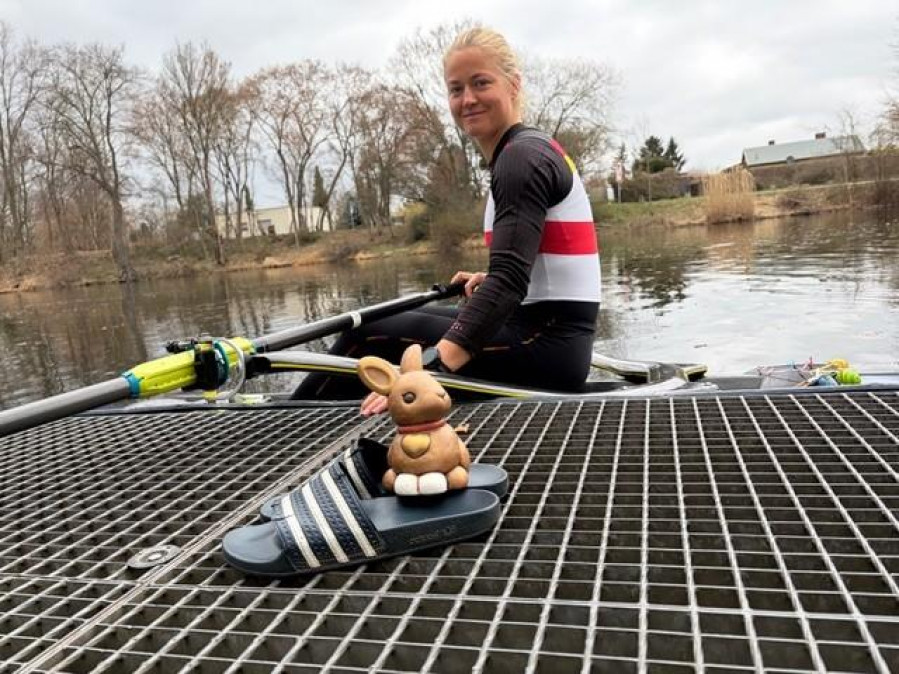 Der Osterhase ist unterwegs. Er saß sogar schon bei Nationalmannschaftsruderin Juliane Faralisch im Boot. Für eine Runde auf dem Hohenzollernkanal.