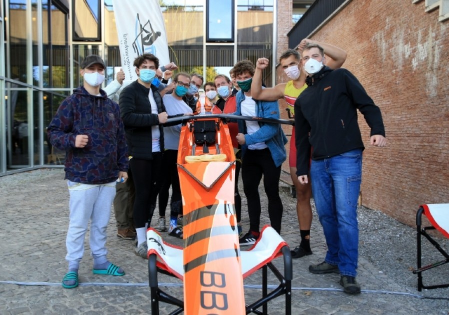 Die Aktiven der Rudervereinigung Hellas Titania freuten sich doppelt: Sie gewannen nicht nur das Achterrennen, sondern auch einen Einer. Die BBG Bootsmanufaktur in Berlin-Friedrichshagen und 4row.com hatten das Boot gemeinsam mit dem LRV als Vereinspreis für die Nachwuchsarbeit ausgelobt. Es wurde unter den erfolgreichsten Vereinen mit den meisten Helfern bei dieser Regatta verlost. „Wir sind immer noch in Kurzarbeit und gehen durch eine nicht leichte Zeit“, sagte der BBG-Mitarbeiter Martin Schönherr, der selbst gern rudert. „Wir haben trotzdem auch in diesem Jahr extra das Boot gebaut.“ Er hat höchstpersönlich aus der Lostrommel den Zettel mit dem Namen des Vereins aus Spandau gezogen.