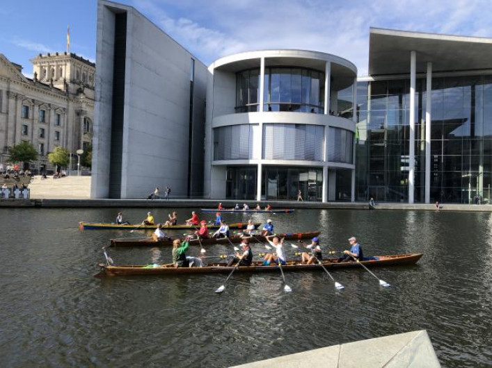 „Ein runde Sache." „Perfekte Stimmung." „Tolle Aktion." Die Begeisterung bei der schönsten Stadtrundfahrt Berlin ist fast grenzenlos. Am 13. September 2025 blieben Motorboote und Ausflugsdampfer liegen. Zwischen 9 und 14 Uhr hieß es auf der Innenstadtspree zwischen Oberbaumbrücke und Lessingbrücke in Moabit „Fahrt frei" für Ruderboote und Kanus – vorbei an Bundeskanzleramt, Reichstagsgebäude, Museumsinsel, Dom, Humboldt-Forum und Nikolaiviertel. Rudern und Kanufahren ist dort normalerweise verboten – außer einmal im Jahr am „Tag des muskelbetriebenen Wassersports".