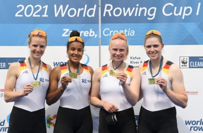 • Die Crew um Franziska Kampmann, Frieda Hämmerling, Carlotta Nwajide und Daniela Schultze holte Gold im Doppelvierer. Sie trainieren in Berlin am Ruderzentrum. Ihr Trainer ist Marcin Witkowski. Carlotta Nwajide sagte nach dem Rennen: „Unser Ziel bei den Olympischen Spielen ist in jedem Fall eine Medaille.“