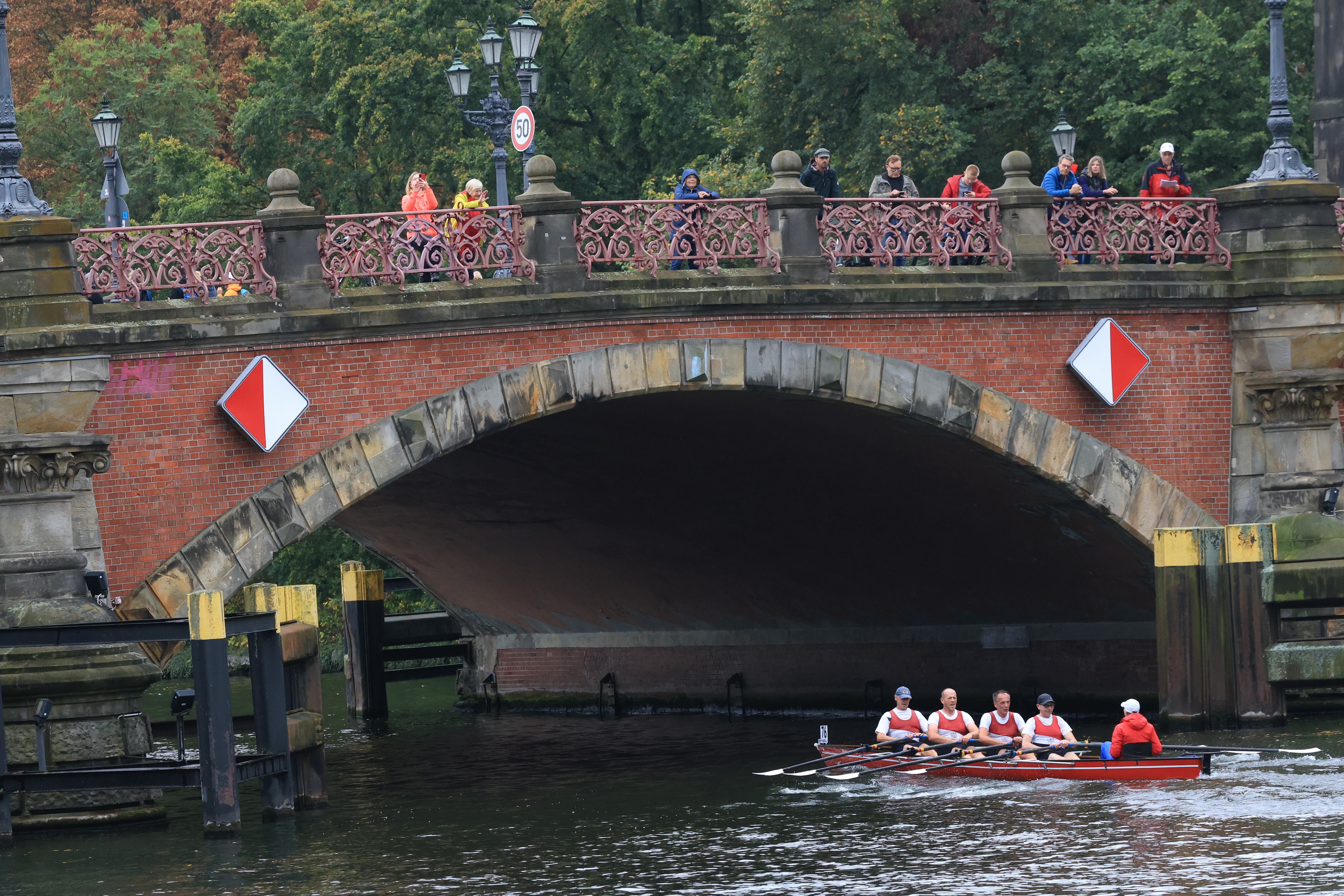Da hilft auch kein Photoshop. Die Bilder zeigen: Der Tag war verregnet. Unsere 94. Internationale Langstreckenregatta „Quer durch Berlin" entpuppte sich trotzdem wieder als ein Highlight in der Sportmetropole Berlin. 1.000 Aktive aus acht Nationen hatten sich schon lange auf diesen 7. Oktober 2023 gefreut. Viele von ihnen sind extra aus Dänemark, Österreich, Polen, Tschechien, der Ukraine, der Schweiz, den Niederlande und ganz Deutschland angereist. Alle hatten den Termin dick in ihrem Kalender eingetragen. Sie brachten Freude, gute Stimmung und den Ehrgeiz mit, eine gute Zeit zu schaffen. Wer die Boote – insgesamt 170 – vom Ufer oder von den Brücken aus verfolgte, hörte die Anfeuerungsrufe der Steuerleute.