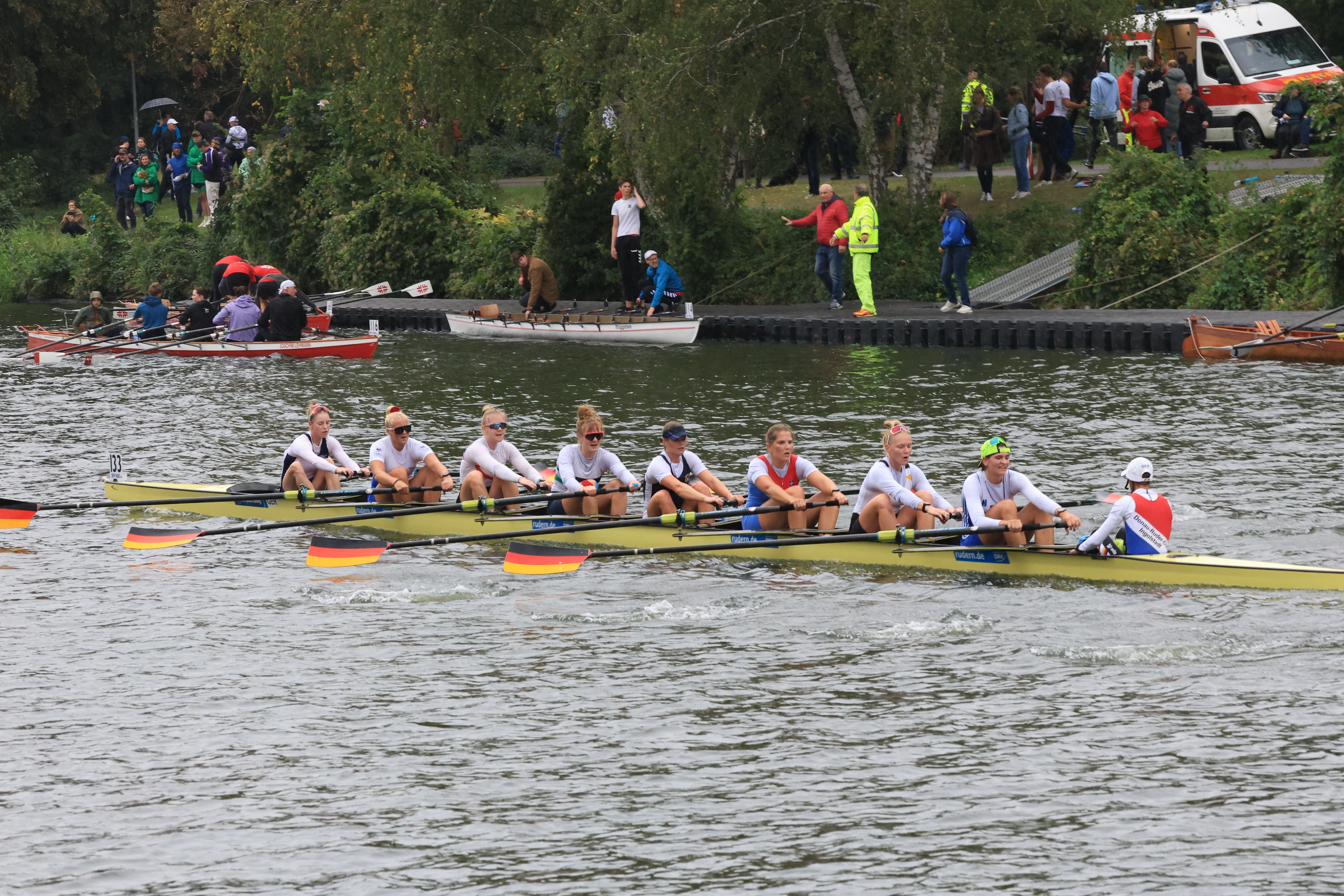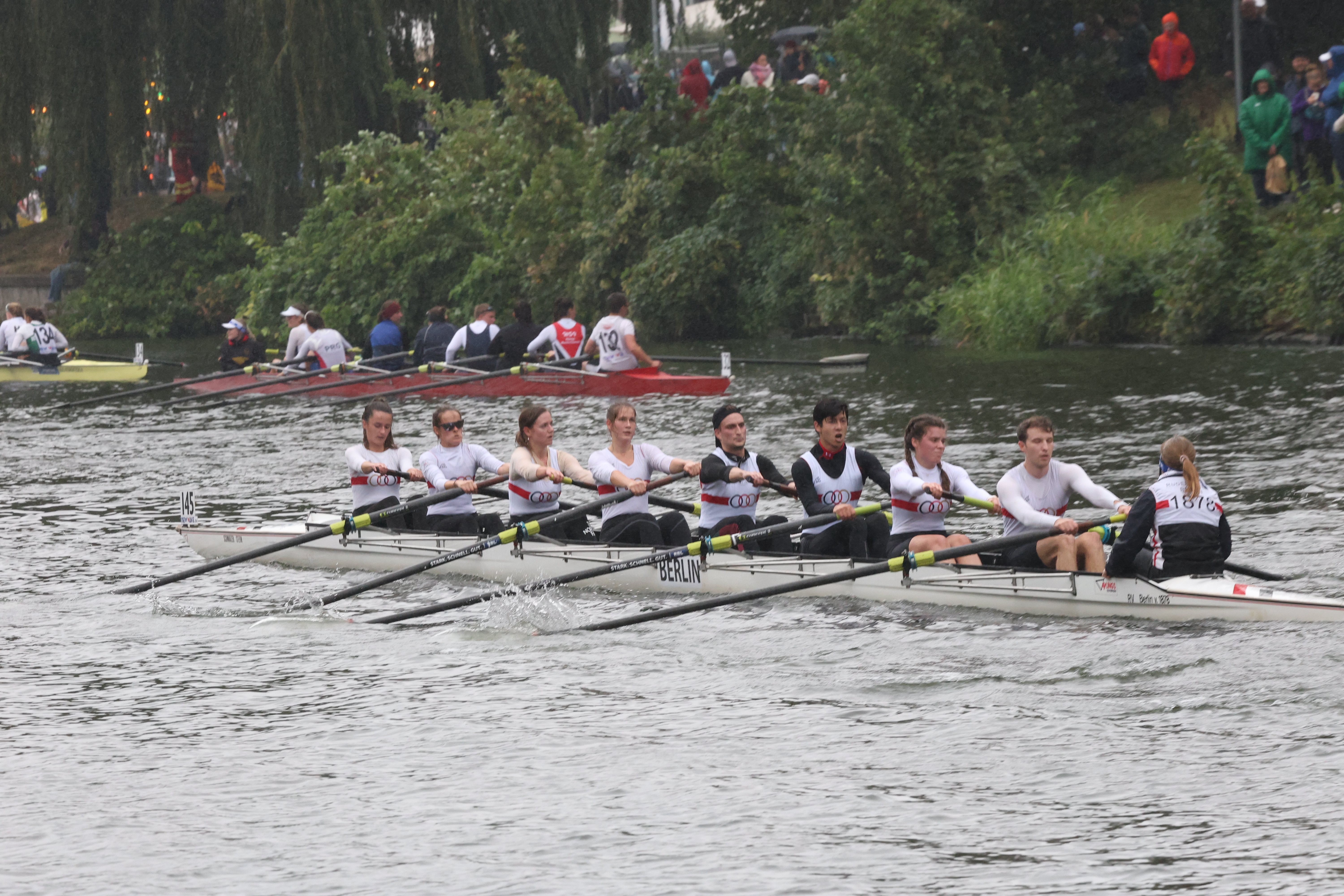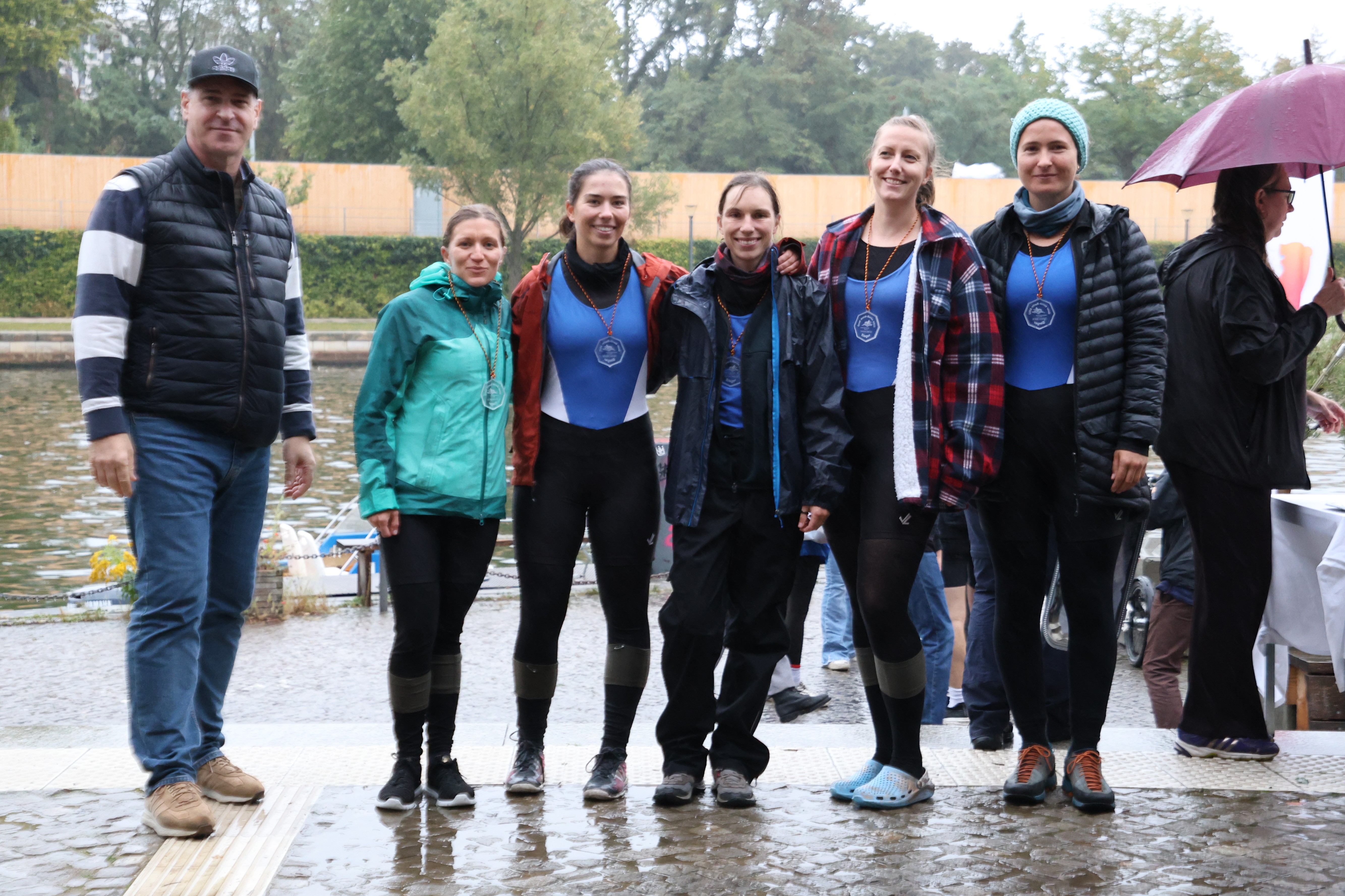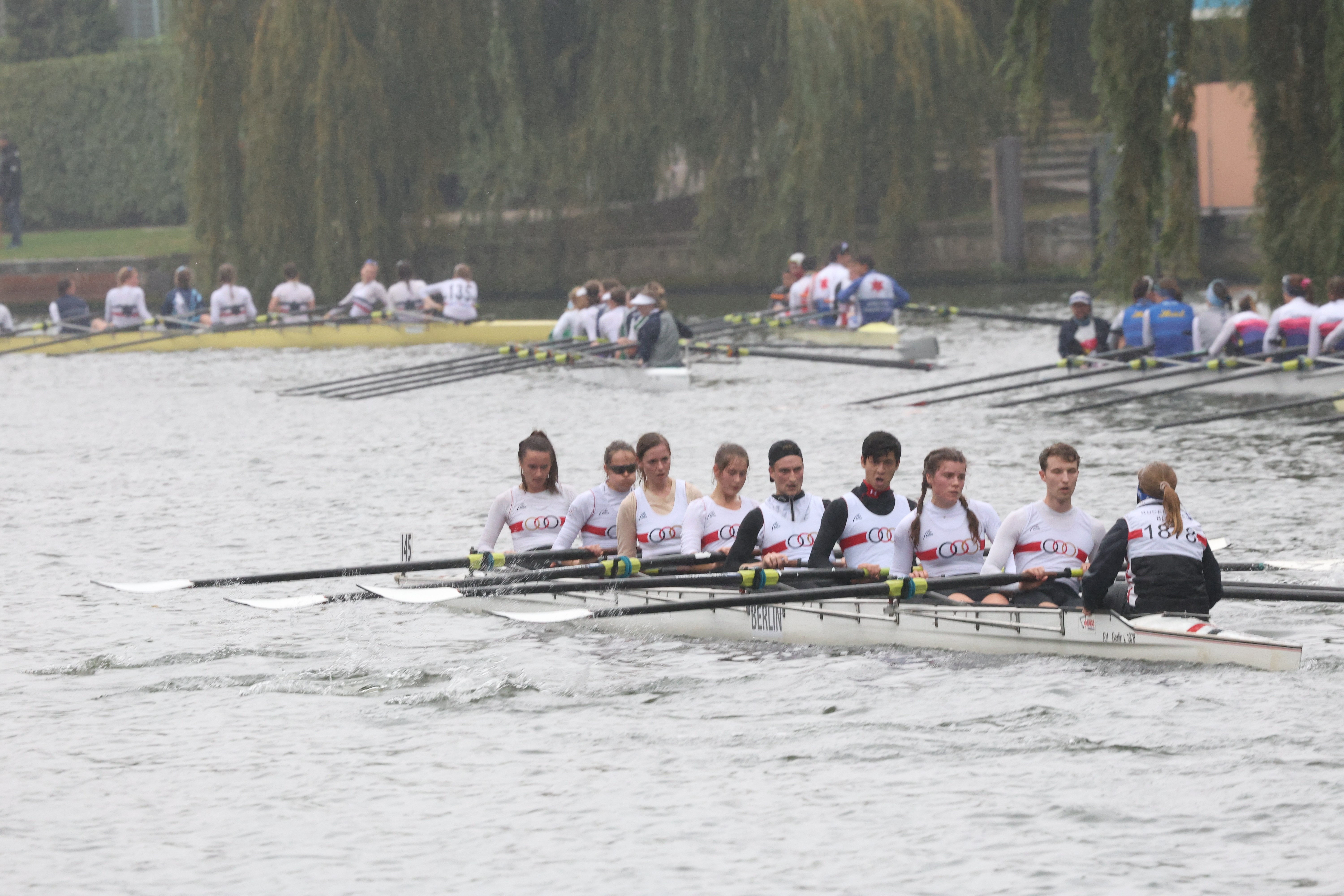 Nicht nur alle Altersklassen waren vertreten – auch alle Leistungsklassen. Sogar das Frauennationalteam mit Trainer Marcin Witkowski. Die Ruderinnen waren erst eine Woche zuvor wieder im Berliner Bundesstützpunkt am Hohenzollernkanal zusammengekommen und hatten ihr Training für die neue Saison begonnen. Der Termin von „Quer durch" passte zeitlich. Da wollten sie sich die Regatta nicht entgehen lassen. Sie starteten im Doppel-Vierer mit Steuerfrau und im Achter. Magdalena Hallay, Marlene Wegener, Annabella Bachmann, Melanie Göldner, Juliane Faralisch gewannen ihr Rennen in 25:27.65 Minuten. Der Frauen-Achter mit Nora Peuser, Frauke Hundeling, Luisa Schade, Judith Guhse, Sarah Wibberenz, Pia Greiten, Tabea Schendekehl, Leonie Menzel und Steuermann Florian Koch holte sich den Pokal mit einer Zeit von 23:45.89 Minuten. Moderator Thorsten Kohlisch wünschte denTop-Athletinnen viel Erfolg beim Wintertraining und viel Glück für Paris.