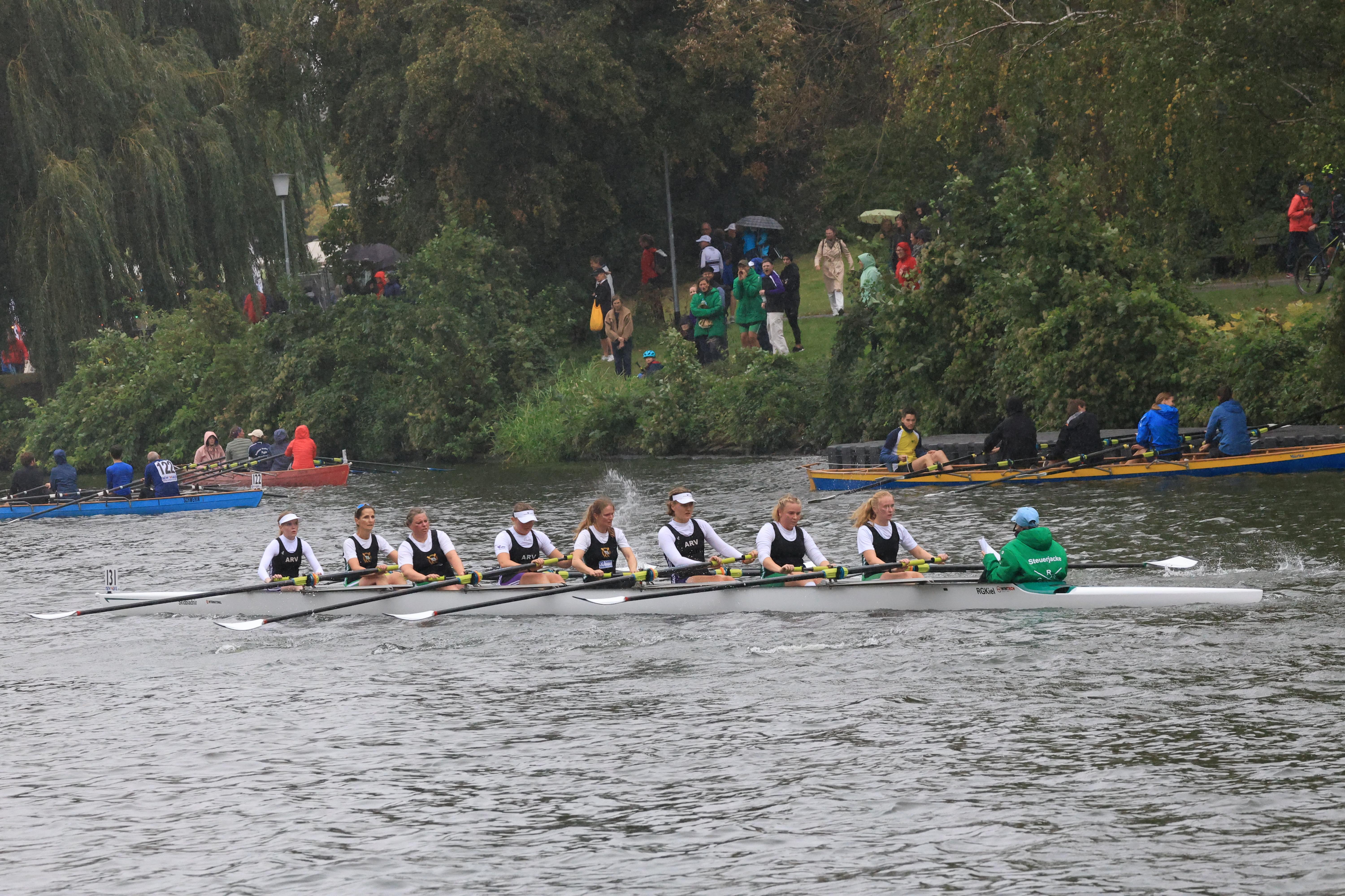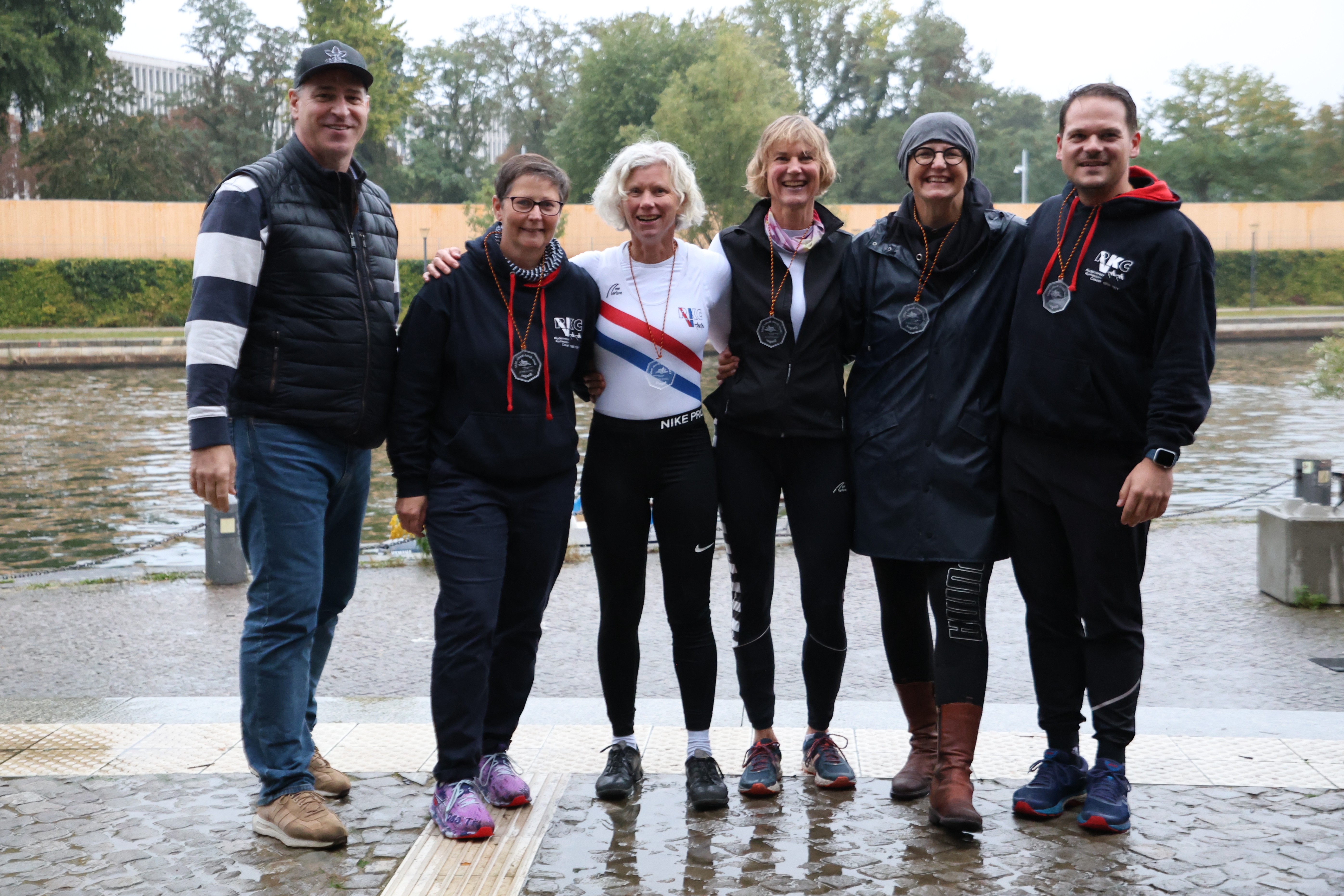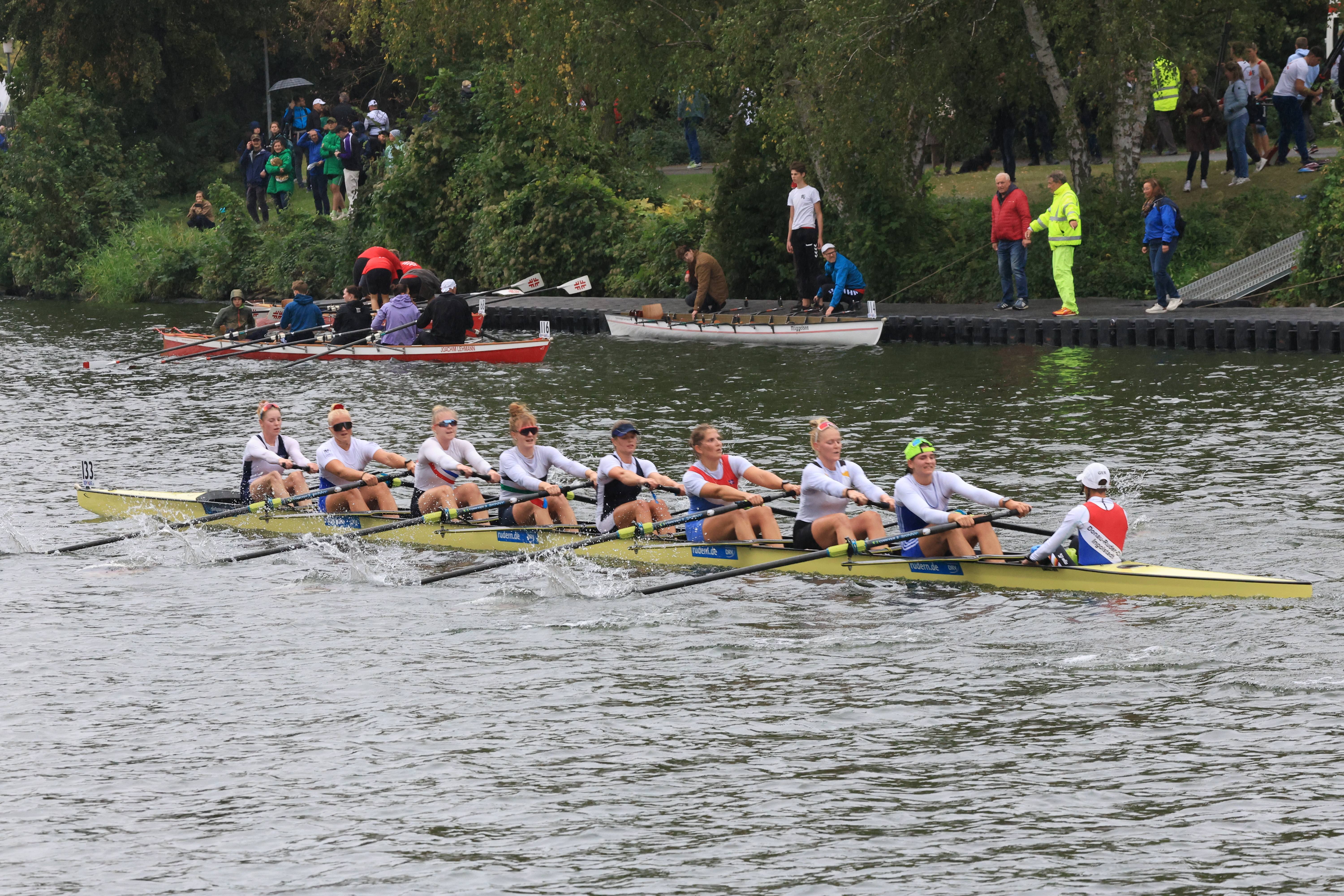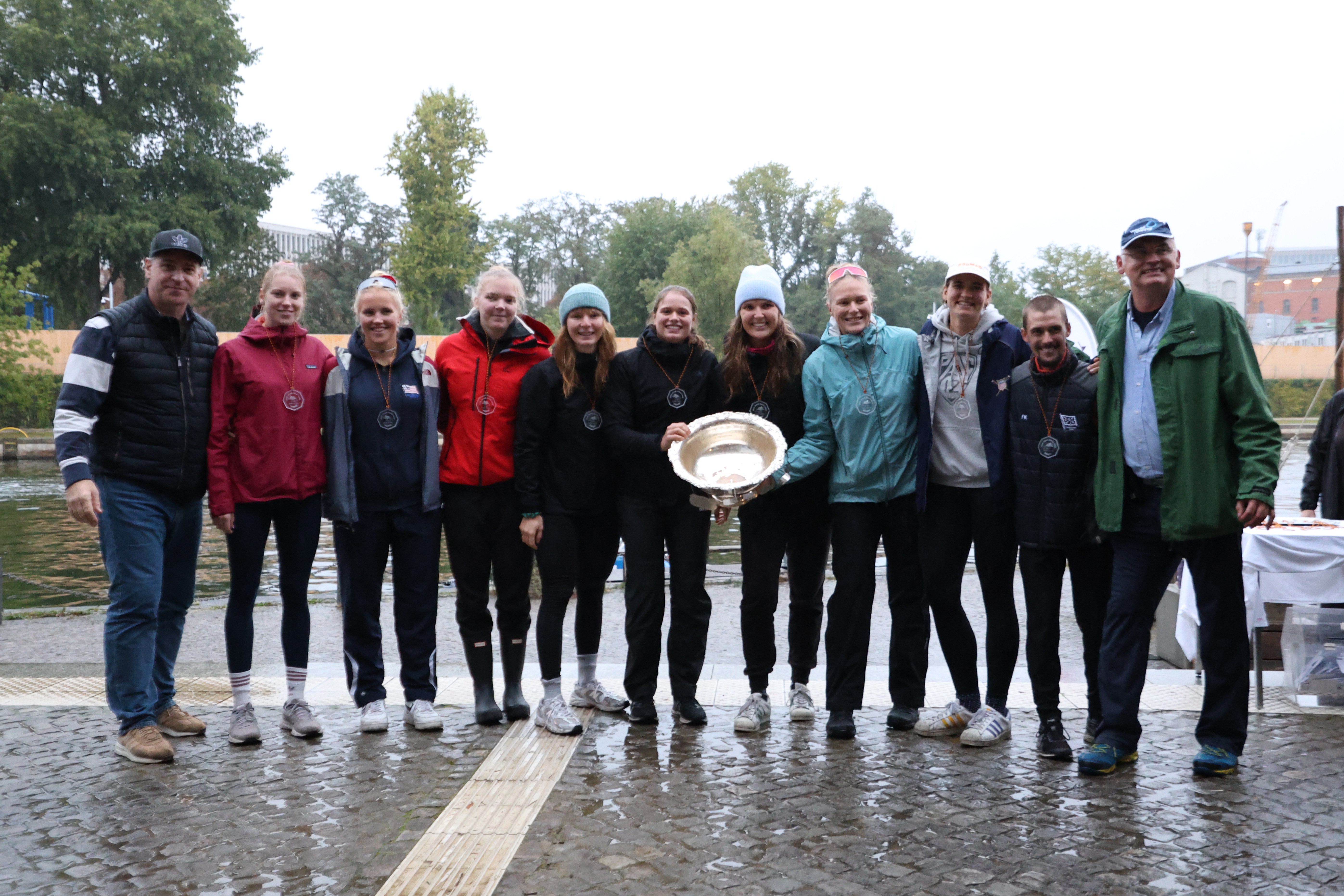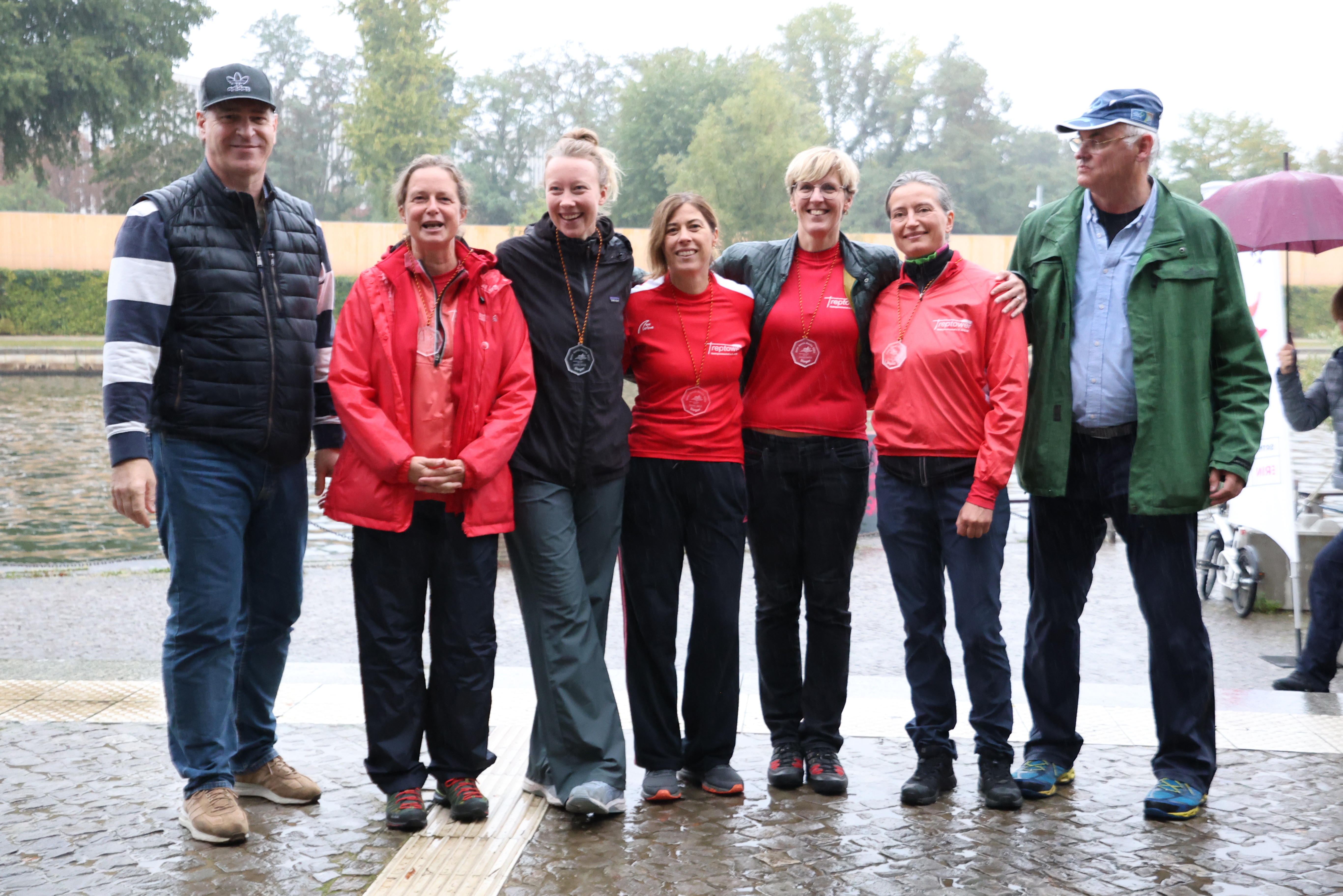 Nicht nur alle Altersklassen waren vertreten – auch alle Leistungsklassen. Sogar das Frauennationalteam mit Trainer Marcin Witkowski. Die Ruderinnen waren erst eine Woche zuvor wieder im Berliner Bundesstützpunkt am Hohenzollernkanal zusammengekommen und hatten ihr Training für die neue Saison begonnen. Der Termin von „Quer durch" passte zeitlich. Da wollten sie sich die Regatta nicht entgehen lassen. Sie starteten im Doppel-Vierer mit Steuerfrau und im Achter. Magdalena Hallay, Marlene Wegener, Annabella Bachmann, Melanie Göldner, Juliane Faralisch gewannen ihr Rennen in 25:27.65 Minuten. Der Frauen-Achter mit Nora Peuser, Frauke Hundeling, Luisa Schade, Judith Guhse, Sarah Wibberenz, Pia Greiten, Tabea Schendekehl, Leonie Menzel und Steuermann Florian Koch holte sich den Pokal mit einer Zeit von 23:45.89 Minuten. Moderator Thorsten Kohlisch wünschte denTop-Athletinnen viel Erfolg beim Wintertraining und viel Glück für Paris.