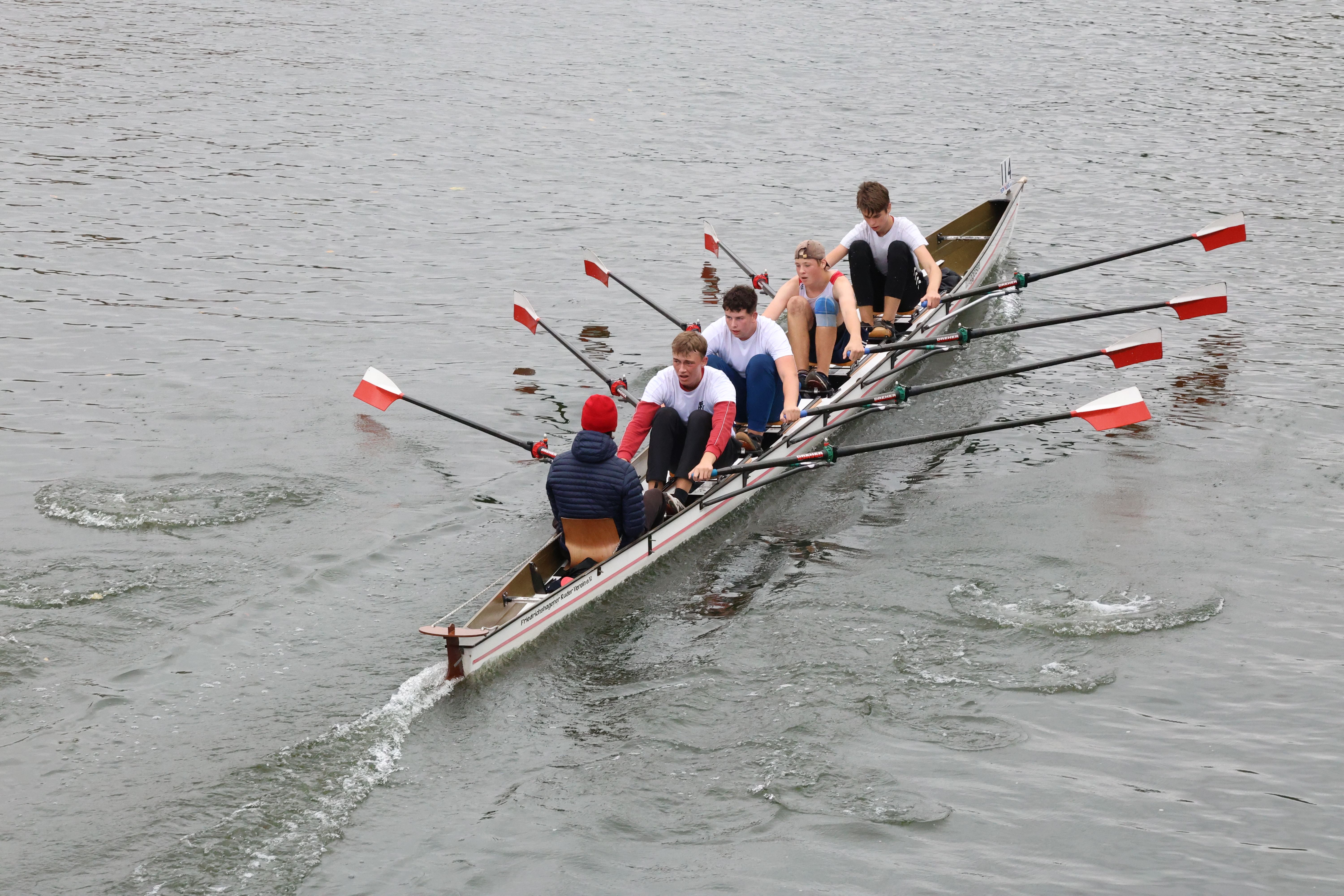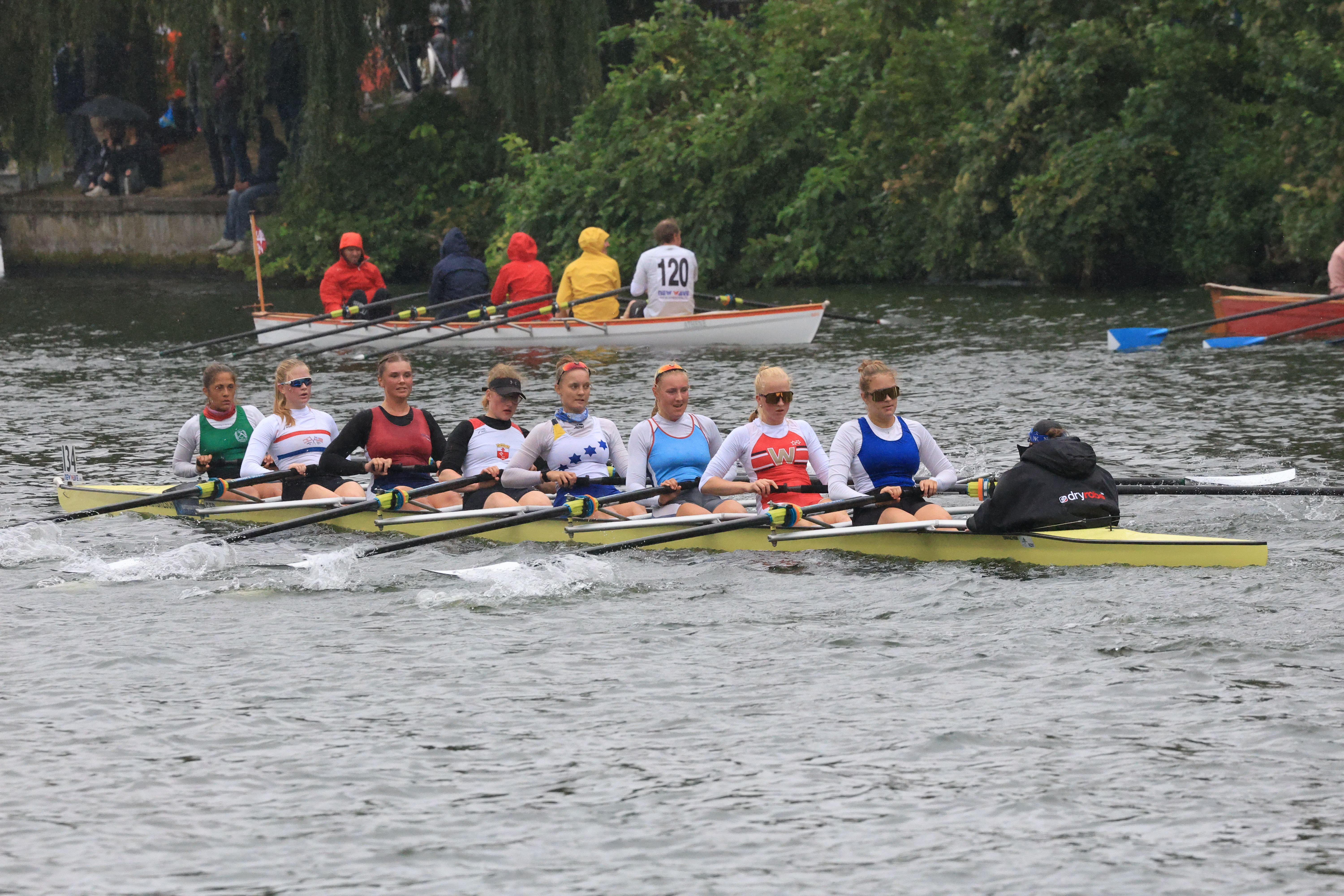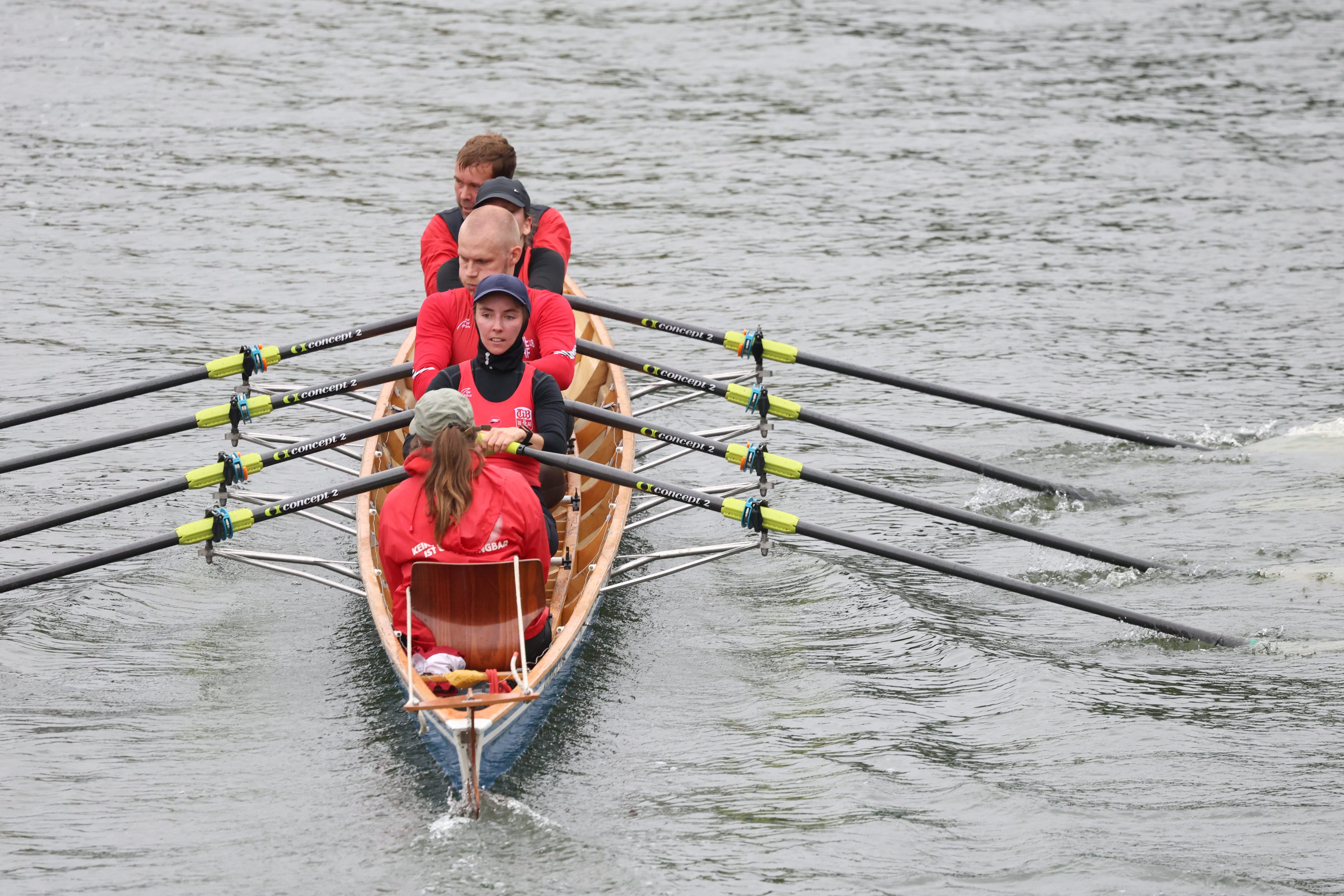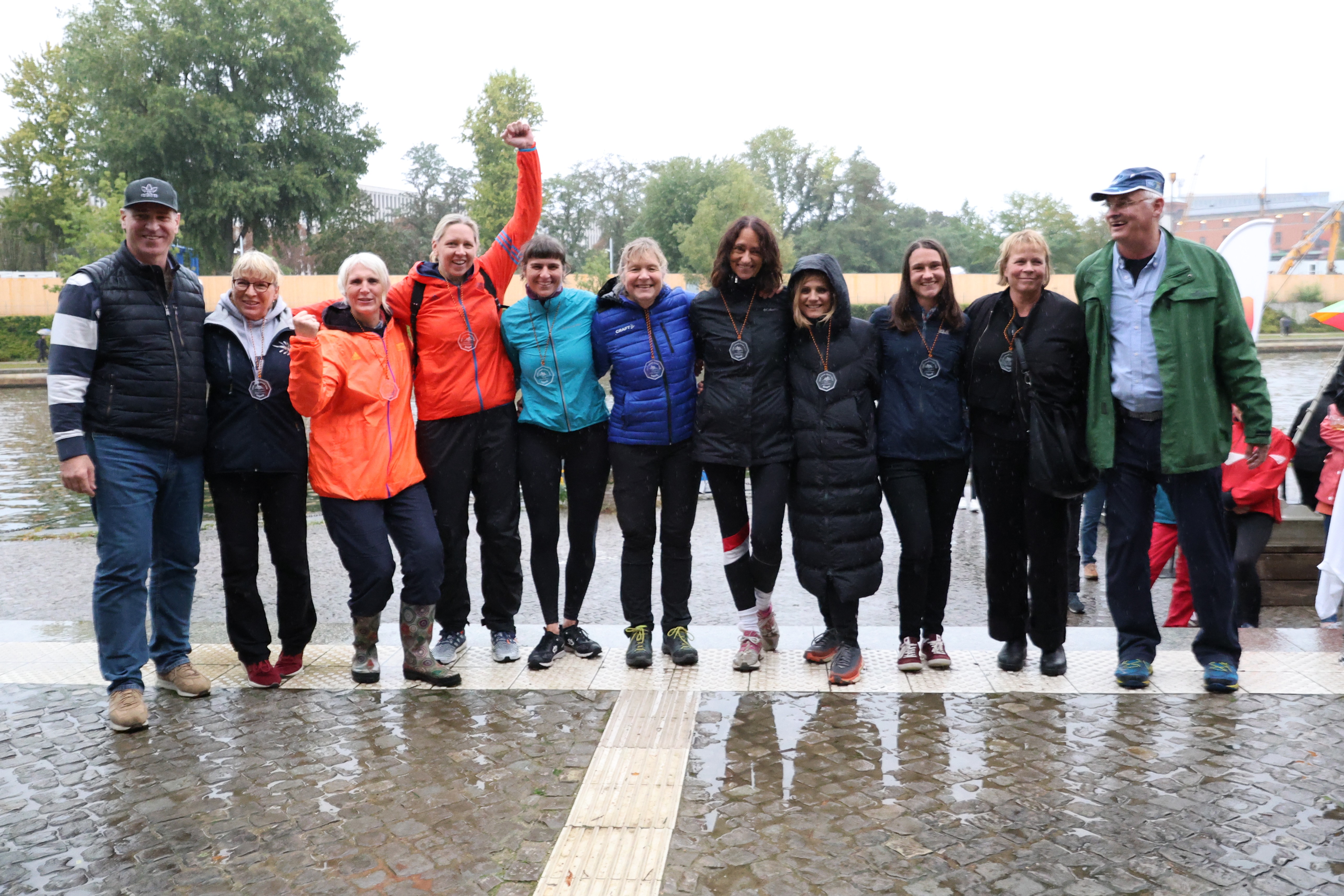 Nicht nur alle Altersklassen waren vertreten – auch alle Leistungsklassen. Sogar das Frauennationalteam mit Trainer Marcin Witkowski. Die Ruderinnen waren erst eine Woche zuvor wieder im Berliner Bundesstützpunkt am Hohenzollernkanal zusammengekommen und hatten ihr Training für die neue Saison begonnen. Der Termin von „Quer durch" passte zeitlich. Da wollten sie sich die Regatta nicht entgehen lassen. Sie starteten im Doppel-Vierer mit Steuerfrau und im Achter. Magdalena Hallay, Marlene Wegener, Annabella Bachmann, Melanie Göldner, Juliane Faralisch gewannen ihr Rennen in 25:27.65 Minuten. Der Frauen-Achter mit Nora Peuser, Frauke Hundeling, Luisa Schade, Judith Guhse, Sarah Wibberenz, Pia Greiten, Tabea Schendekehl, Leonie Menzel und Steuermann Florian Koch holte sich den Pokal mit einer Zeit von 23:45.89 Minuten. Moderator Thorsten Kohlisch wünschte denTop-Athletinnen viel Erfolg beim Wintertraining und viel Glück für Paris.