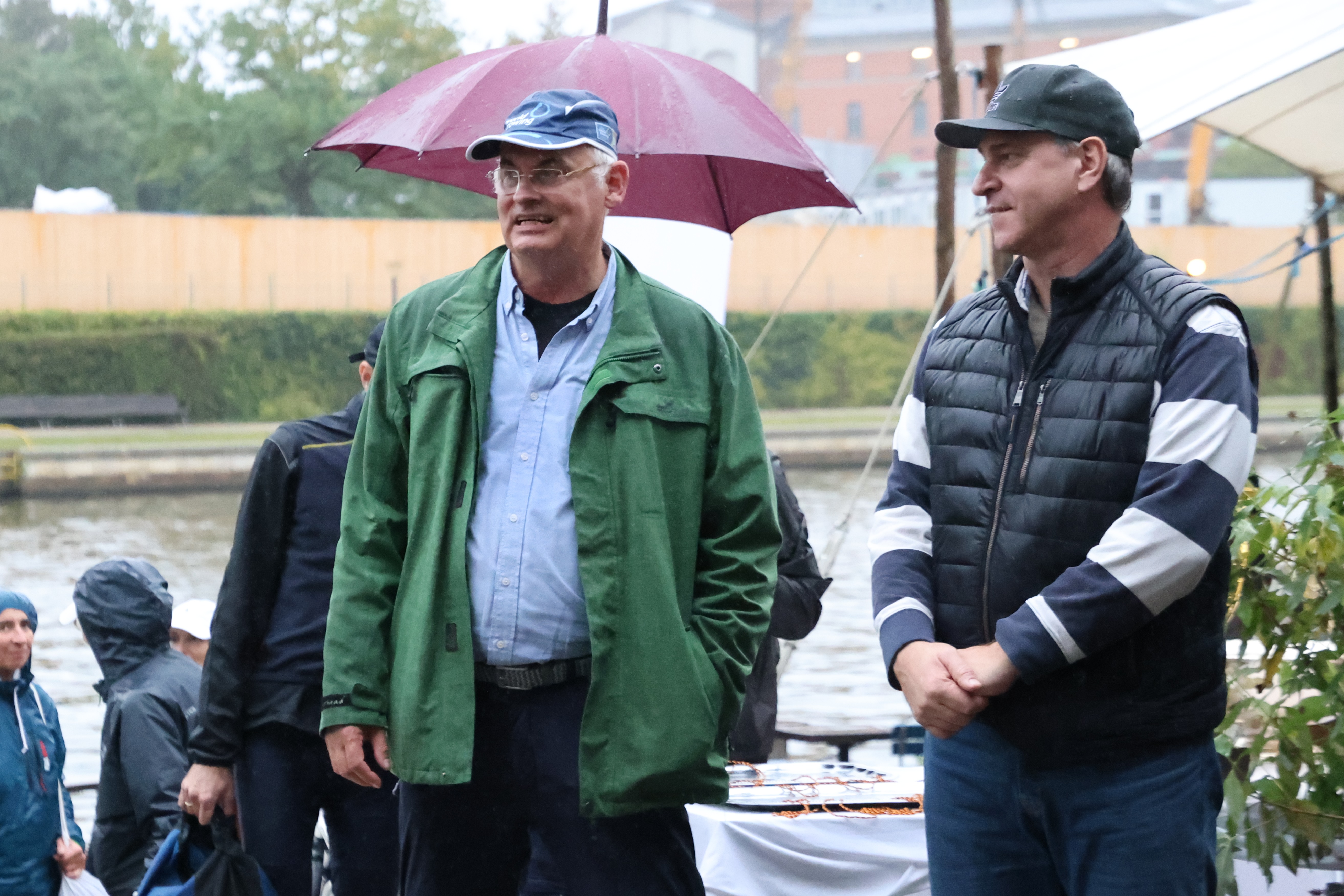 Der Deutschlandachter war auch vertreten: Olaf Roggensack vom RC Tegel verfolgte die Rennen im Zielbereich. Ebenso der Präsident des Landesruderverbands Berlin, Thomas Haun, und sein langjähriger Vorgänger im Amt, Kasten Finger, zugleich Vizepräsident des Landessportbunds Berlin. „Quer durch Berlin" – ein Get-together des Rudersports mit viel Gesprächsstoff.