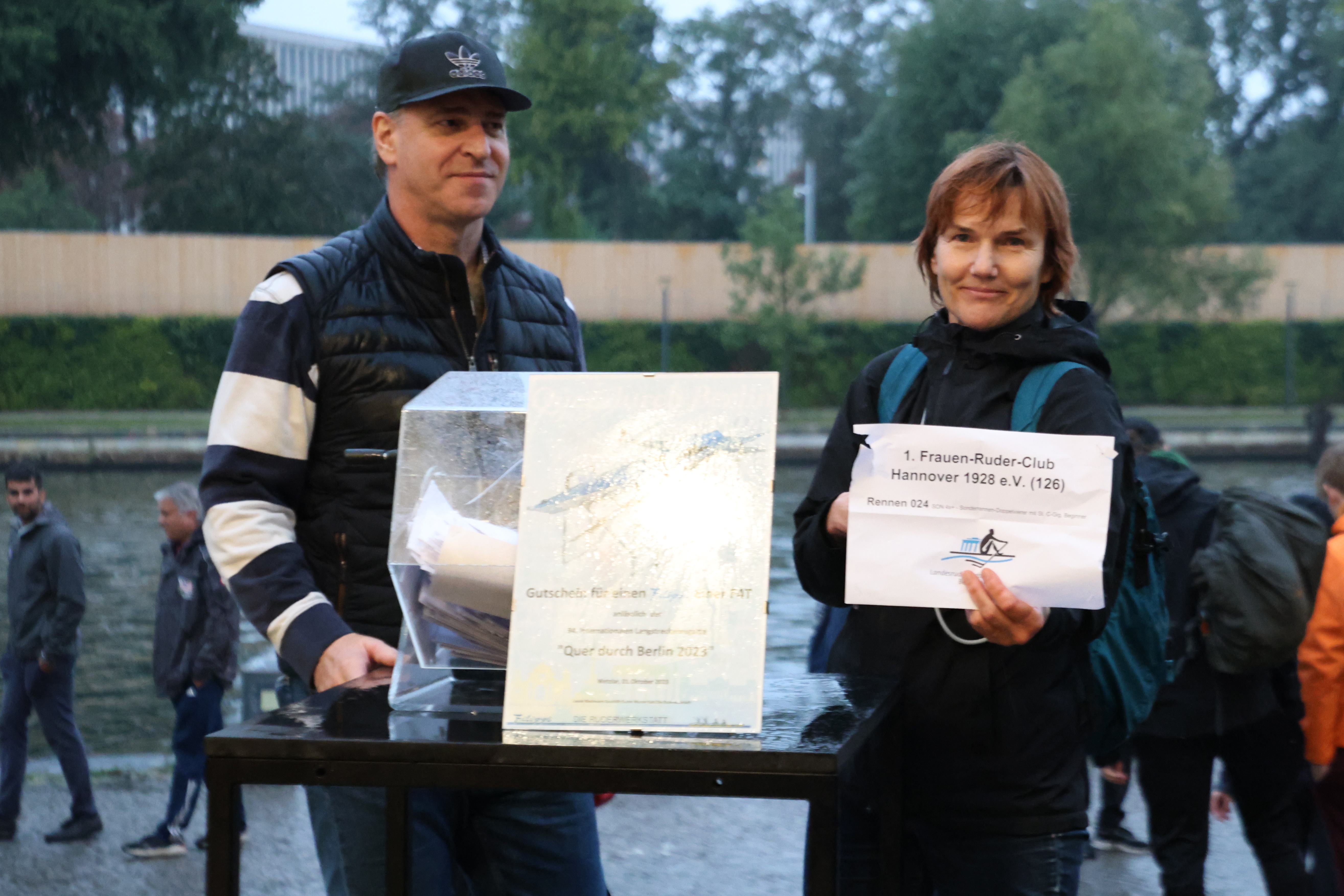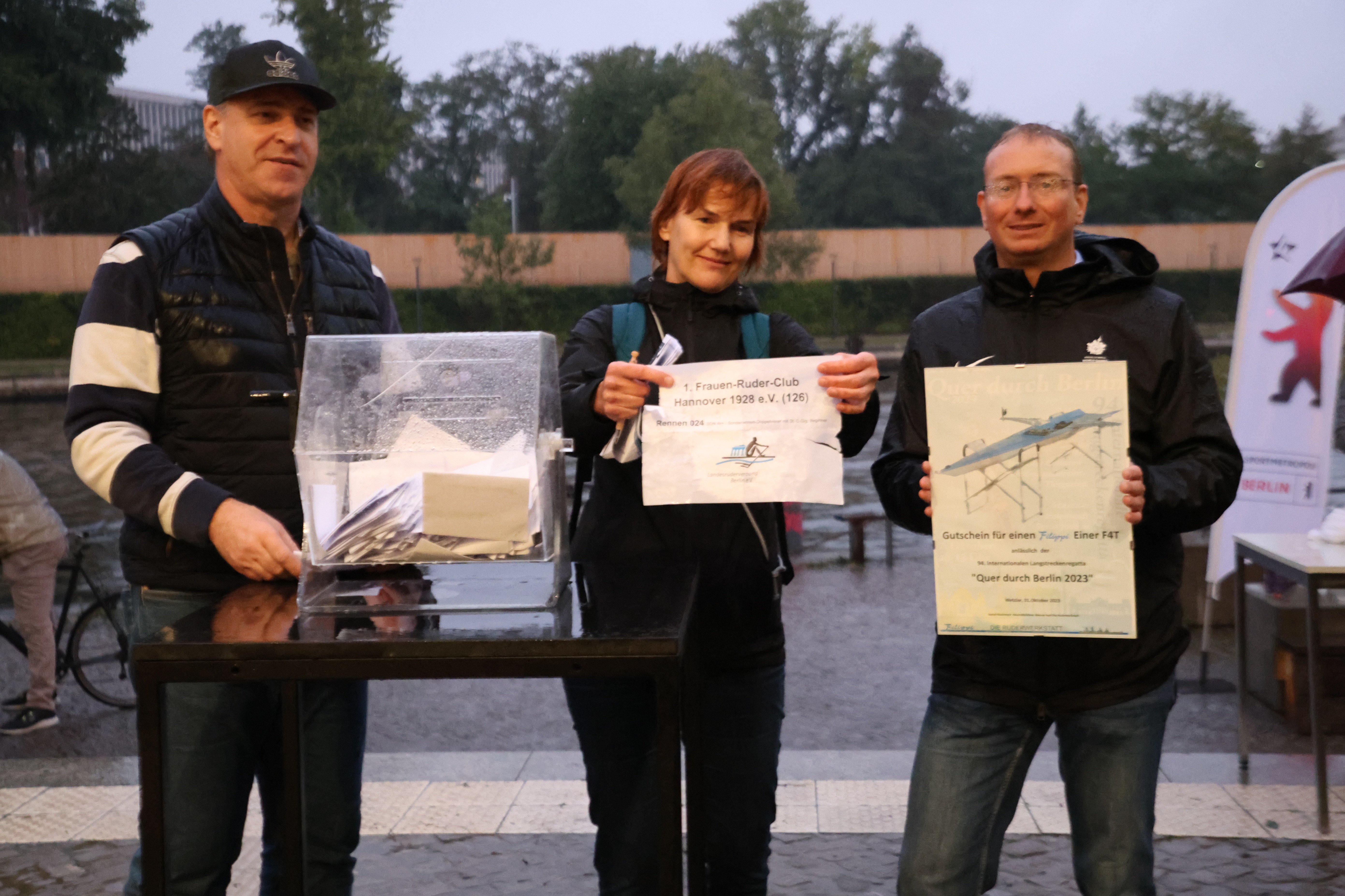 Unter den erfolgreichen Vereinen wurde traditionell ein Einer für die Förderung der Jugendarbeit verlost. Glücklicher Gewinner des mit Unterstützung der Ruderwerkstatt Werner Kahl und der Sportmetropole Berlin bereitgestellten Preises ist diesmal der 1. Frauen-Ruder-Club Hannover 1928.